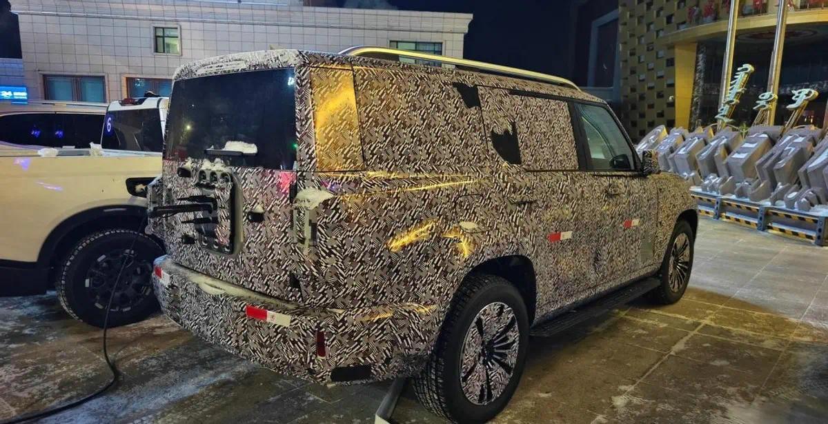 新车第一眼看过去就是硬朗,中网像一副硬甲,D柱的镰刀造型犀利得很。头灯更是被网友戏称“八眼魔神”,辨识度拉满。车长超过5米,后桥独立悬架,带大梁,三排座没跑。动力Hi4插混肯定安排上了,智能座舱加带VLA的高阶辅助驾驶,魏建军把这车定义为“旗舰”确实不虚。